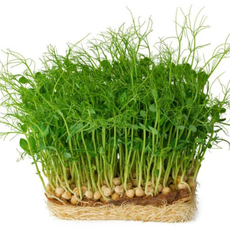 Description: Pea microgreens are a delicious, nutrient-dense superfood, rich in plant-based protein, fiber, and essential vitamins. They are an excellent source of vitamins A, C, and K, along with iron, calcium, and magnesium, supporting immune function, digestion, and bone strength. Their high antioxidant and chlorophyll content aids in detoxification and inflammation reduction.